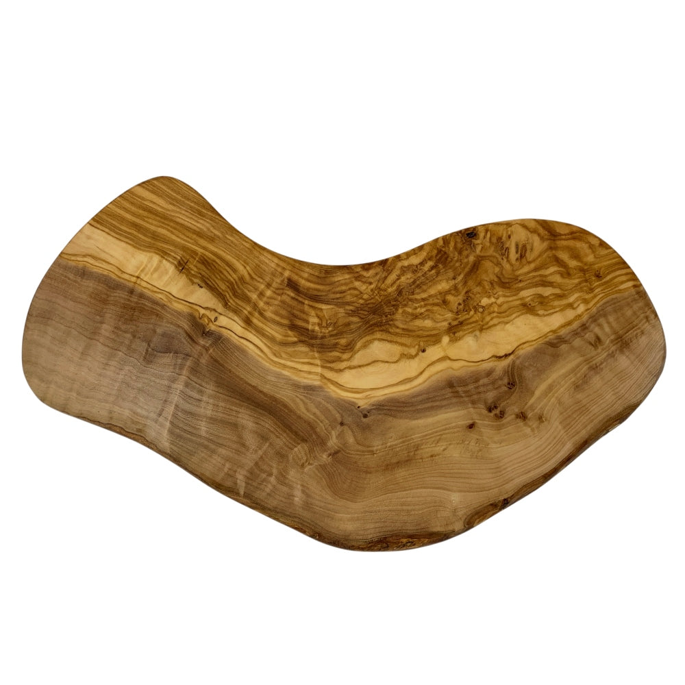 This stunning irregular shaped chopping board is handmade from a sustainably sourced solid Cretan olive wood. It is weighty to hold, unique and has a smooth work surface. Due to the high density of the olive wood, it does not easily scratch or stain.