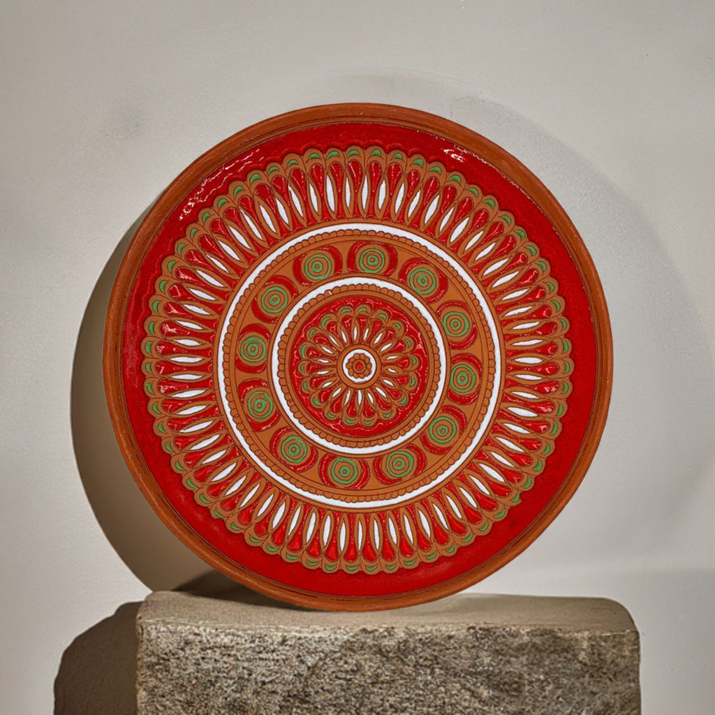 The first stage of production is the use of the potter’s wheel to create the dish, followed by a quality check before moving to hand carving the design. Once the clay dries it then goes through the first baking session and takes the form of “biscuit” (terracotta). Next the dish is painted by hand with unique colours and then the second baking stage begins. This is the stage which changes the dish's appearance bringing its beauty alive in its final form.