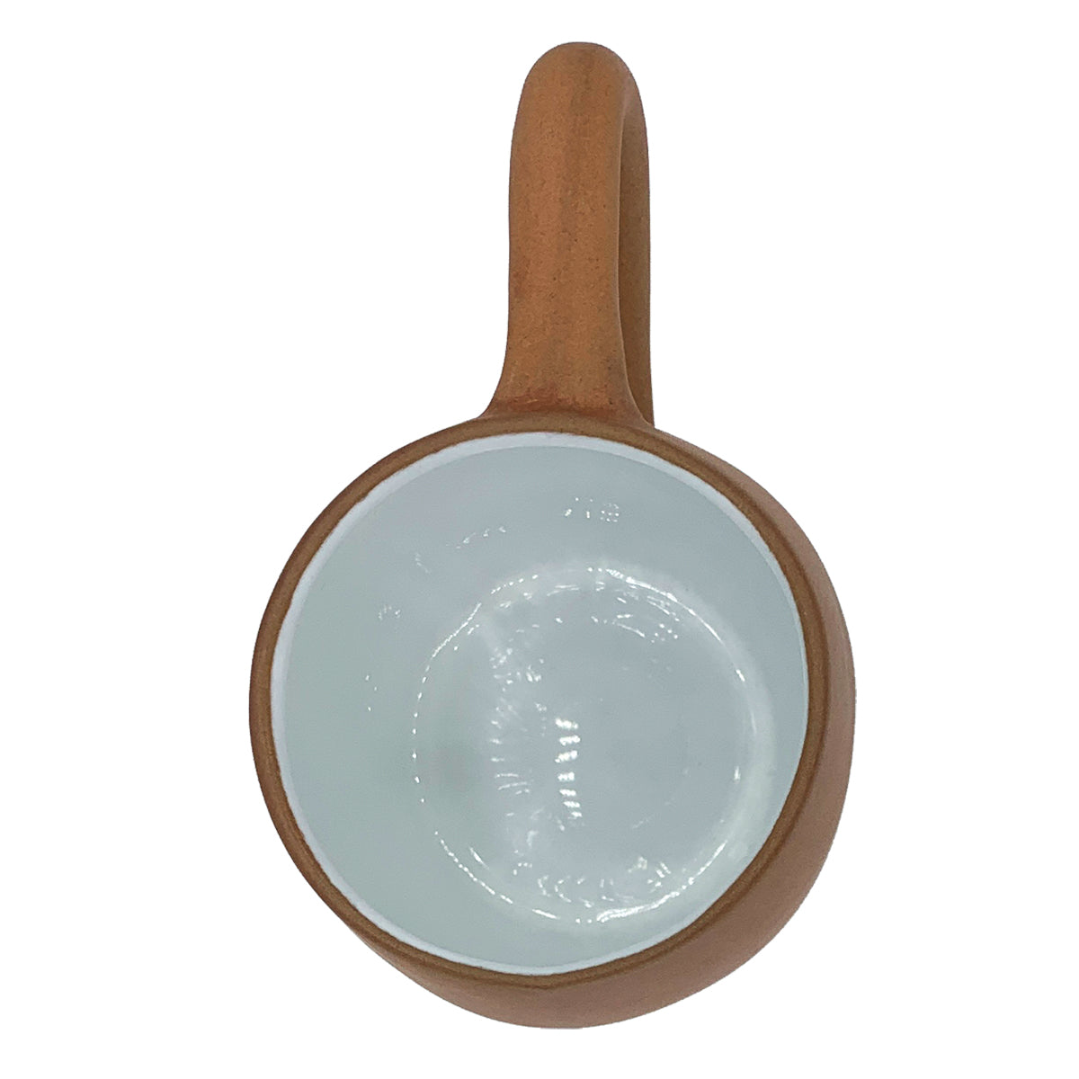 This beautifully unique handmade ceramic mug has a traditional terracotta exteriors and a white glazed interior.